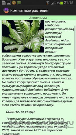 Комнатные растения Обновлено: 09.05.13 Версия: 1.4 Требования: Android Android 2.2+ Жанр: Книги Размер: 10.86 MB Мб Наша оценка 0 В избранное Скачать Запросить обновление 0 0 Комнатные растения - вы любите комнатные растения? Тогда эта программа именно для вас. Вы сможете просмотреть и прочитать много полезной информации о многих видах комнатных растений. В программе более 300 разных видов растений с фотографиями. Подробнее Скачать Комнатные растения Андроид бесплатно Комнатные растения Размер: 10.86 MB Мб, Скачали ~5 125 раз. .apk Скачать Комментарии Минимальная длина комментария - 50 знаков. комментарии модерируются Отправить Комментариев еще нет. Вы можете стать первым!