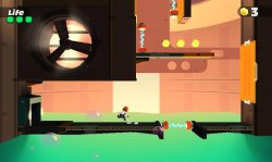 One Up - Lemonade Rush! Lite - увлекательный платформер с элементами раннера, сделанный в красивой графике. На лимонадном заводе повредился основной насос, который продвигал лимонад и это призвело к тому, что завод затопило лимонадом и он очень стремительно стал подниматся вверх. Вам предстоит играть механиком, и ваша задача в игре - бежать вверх, дабы спастись от лимонада, который очень быстро поднимается.