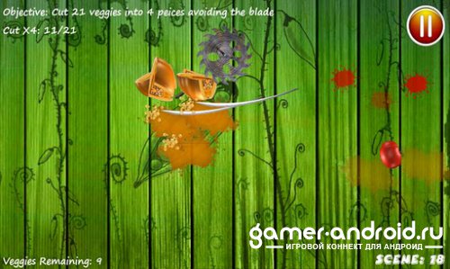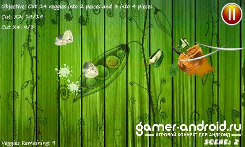 В общем игра в целом не плохая, как и Fruit Ninja, с очень не плохой графикой и звуковым сопровождением. Все также нужно резать овощи на 2,3,4 части. Достаточно замораживающий и динамический геймплей, плюс три режима.