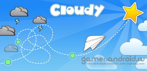 Cloudy - прокладывайте путь для того, чтобы по нему смог пролететь бумажный самолетик в этой увлекательной головоломке на андроид! Прокладывая путь, старайтесь собирать звездочки, но остерегайтесь черных облаков с молниями, потому что если самолет попадет в такую тучу, то он разобьется. Старайтесь прокладывать оптимальный путь, это будет давать вам больше очков.