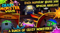Crazy Monster Whack - прекрасная аркада с 3D графикой и очень захватывающим геймплеем. Вы маленький монстрик который бегает и лупит всех большим молотком по голове. Игра также будет развивать у Вас реакцию, так как с каждым новым уровнем монстры с лунок будут вылазить быстрей. В игре больше 100 видов различных монстров с особыми способностями, много часов веселья и потрясающая 3D графика.