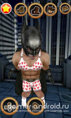 Talking Batman - забавная говорилка с Бэтменом для андроид! Говорите с них, и он будет повторять все сказанное вами, но только смешным голосом. А также Бетмен умеет танцевать как Майкл Джексон, в стиле Gangnam Style и не только, Вы можете заставить его спать, или же содрать с него одежду, чтобы он закричал женским голосом. Кроме того, его можно ударить. Вообщем развлекитесь с Бетменом по полной!