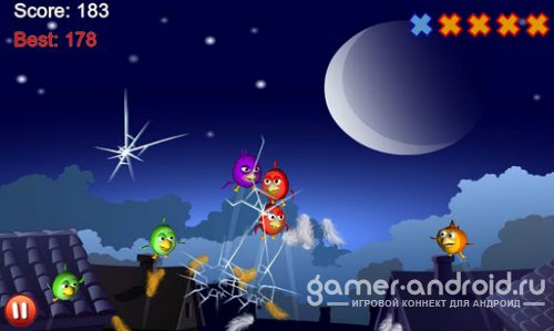 В данной версий игры присутствуют два режима нет бомб и классический, выбирайте тот который вам переглянулся и вперед резать птичек). Также за ловкость, если вы зацепите несколько птичек одновременно, будет начислен бонус.