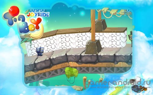 Tinboy Joyride. Робот Джоем - беглец, он оставил своего создателя - крупную корпорацию по разработке роботов. Теперь ему ничего не остается кроме как бежать вперед куда глаза глядят, несмотря на все трудности, что встречаются у него на пути: препятствия и ловушки. Чтобы его путь был легче, он должен собирать бонусы на своем пути, которые помогут в прохождении, так сказать дополнительные очки - которые смогут помочь ему перейти на новый уровень. Красочная добрая игра, простое управление, больше 60 различных уровней.
