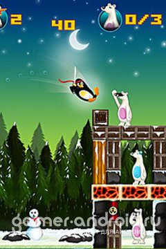 Crazy Penguin Catapult — Эта игра не заставит вас заскучать. Хорошая, простая игра, занимающая немного места, но хорошо поднимающая настроение.  Ваша задача- попасть пингвином в белых медведей, которые спрятались по всей карте, в том числе и в пещере. Сначала вы управляете катапультой, а потом и самим пингвином во время его полета. Игра отлично подойдет вас, если вы живодер, ненавистник пингвинов или вам просто нужно убить скучные времена. Ее можно назвать братом Angry Birds, так как они очень похожи.