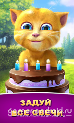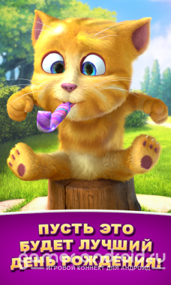 Ginger's Birthday - милый котик Рыжик отмечает свой день рождение вместе с нами. Теперь вы сможете покормить его вкусными сладостями и даже хорошо повеселиться и поиграть. Говорите с ним и он будет повторять ваши слова. Дотроньтесь к нему и смотрите как он будет реагировать. Празднуйте день рождение вместе с маленьким рыжим котенком.