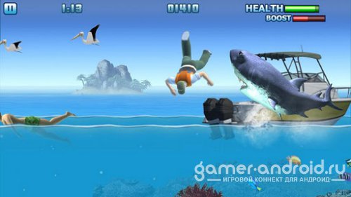 Hungry Shark- потрясающая игра о акулах. Теперь вы в роли кровожадного хищника! Вы можете есть все что движется, в том числе и людей. Но не думайте что все ваши проделки сойдут вам с рук и что кого-то съесть это так легко.