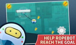 RopeBot Pro - игра очень напоминает игру Cut the Rope. Только здесь вы будете помогать маленькому круглому роботу собирать болтики. В игре более 45 разной сложности уровня с яркой графикой и интересным сюжетом. Ваш робот сможет даже цепляться рукой за разные стены и потолки.