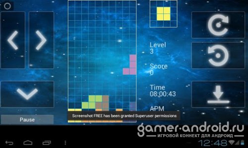 Tetris 2013 - легендарный тетрис, только в более современном оформлении! Вспомните детство и вашу любимую игру в тетрис! Думаю смысл игры тетрис никому объяснять не нужно. Чем дальше вы будете идти и чем больше зарабатывать очков, тем сложнее будет играть и скорость падения блоков будет увеличиваться.