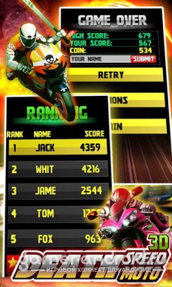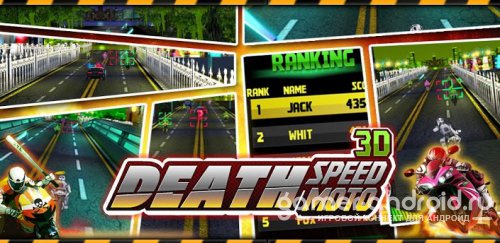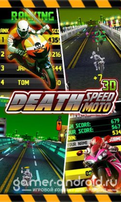 Death Speed:Moto 3D - захватывающий райсинг на андроид на мотоциклах! Хотите стать настоящим мотогонщиком? Тогда в этой игре вы сможете им стать! Вас ждет скорость, адреналин и много мотоциклов. Игра обладает красивой и качественной графикой, кроме того также захватывающим геймплеем. Также есть много интересного.