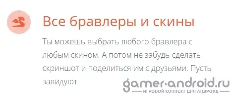 Выбирай любого бравлера и используй любой скин. А после – делись скриншотами с друзьями, вызывая у них восхищение!