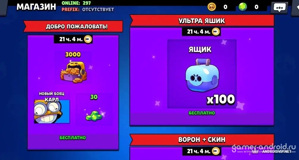 Также действуют специальные акции. К примеру, большой ящик можно купить всего за 1000 монет. Кроме этого, разработчики добавили новые скины, дополнительного персонажа и немного изменили систему кубков.