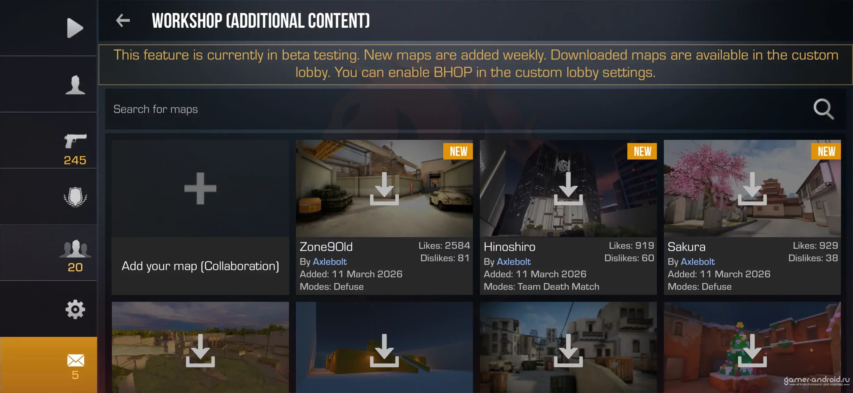 В игре доступна мастерская, позволяющая создавать собственный контент. Можно разрабатывать карты, добавлять новое оружие и играть на уникальных локациях.