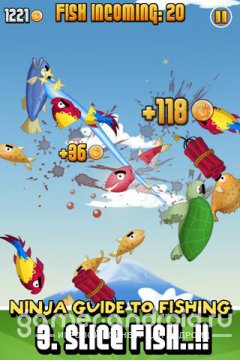 Как только рыба будет в воздухе разрезайте её прямо в воздухе, чтобы получить больше золота. В игре отличная HD графика, 60 разновидностей рыб и многое другое.