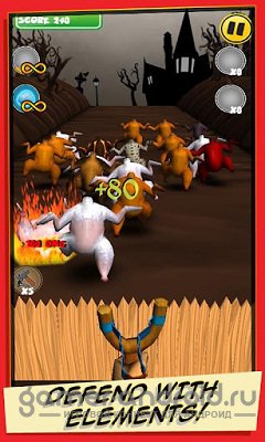 Attack Of The Roasted Chickens - вооружившись только рогаткой, остановите полчище жареных цыплят. Не дайте жареным цыплятам пересечь ваш барьер из досок, всячески отбивайтесь от них, прибегая к хитростям и уловкам. Красивая графика, простой геймплей, жутковатая музыка и многое другое в этой великолепной игре.