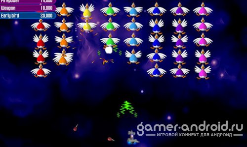 Chicken Invaders 2 - в это игре, Вы будите защищать солнечную систему от вторжения Кур. Куриная эскадра летит на землю, что бы уничтожить человечество! Вашей задачей будет, летите на каждую планету и уничтожайте эскадрилий Кур. Пробивайтесь через огромные орды Кур, собирайте как можно больше бонусов и избегайте летящих яиц!