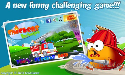 Chickens BBQ - это очень забавная аркада для Android. В этой веселой игре, Вы будите управлять командой пожарных цыплят! Вашей задачей будит спасать прыгающих цыплят из окна, так как дом охвачен огнем! Но еще больше усложняет, атака голодных инопланетян который пытаются похитить цыпляток. В игре, Вас ждет три части по 50 сумасшедших уровня.