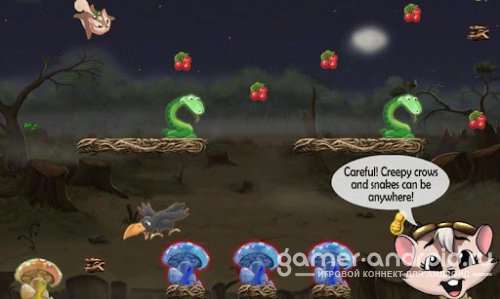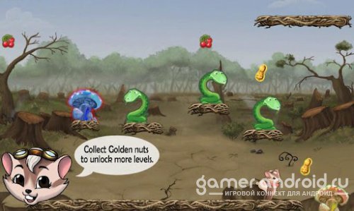 Carmella the Flying Squirrel - это история про белку, которая прыгает с ветки на ветку, в поисках фруктов и золотых орешков, для ее выживания. Для сбора фруктов и орешков будут помогать грибы, для подпрыгивания в верх. Мешать конечно будут различные препятствия, в том числе таинственная группа змей и ворон.