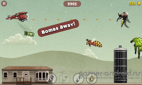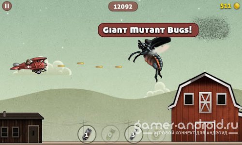 Bugduster - Забавный шутер с приятной 2D графикой. На ферму напали огромные пчёлы мутанты! Ваша задача будит помочь Гасу, пилоту экстра-класса защитить ферму и спасти мир, от этих огромных латающих чудовищ! Сражайтесь с мутантами, собирайте монеты, улучшайте свой самолет!