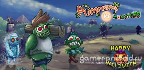 Pumpkins vs. Monsters - Очередной вариант на тему борьбы с зомби. В данной игре вы будете выступать в роли тыкв и бороться с монстрами. Из особенностей игры стоит выделить больше количество уровней для прохождения, три различных мира, легкое управление и многое другое.