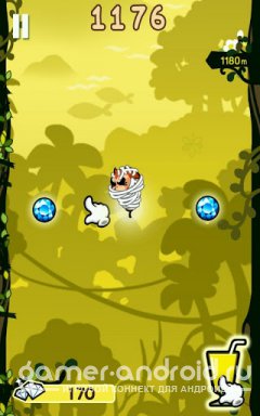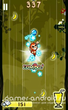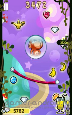 Escape The Ape - Вы будете играть за маленькую обезьянку которая убегает все вверх и вверх от злой гориллы, собирая по пути бананы, драгоценности и бонусы. Вам нельзя падать так как Вы попадете в руки злой гориллы.