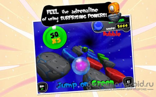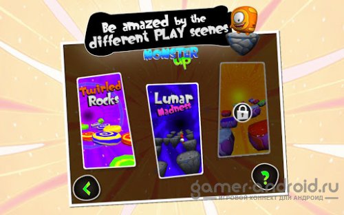 Monster Up HD - почувствуйте адреналин прыгая монстром по цветным платформам в различных галактиках, делая сумасшедшие скачки с простым и понятным управлением. Цель игры проста, чтобы заработать больше очков Вам нужно будет прыгать на те цветные платформы, цвет которых будет указан в верху игры.