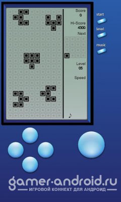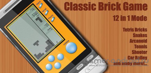 Brick Game - Retro Type Tetris - Старенькая игра, всем известный классический тетрис с двенадцатью играми в придачу. Помимо обычного тетриса присутствует звейка, шутер, тенис, и многое другое. Интерфейс игры выполнен в стиле того самого тетриса и вызывает ностальгические чувства. В настройках игры можно изменить внешний вид, сменить цвет панели, позиции кнопок.