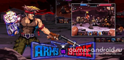 Army Vs Zombie - отличная зомби стрелялка в жанре TD. Сразитесь против армии зомби, которую создал Гитлер в время Второй мировой войны. По прошествии времени мир был захвачен и те кто спаслись отправили в прошлое человека с железной рукой, для того чтобы он остановил армию нежити. Вас ждут 75 головокружительных уровня с 6 нелегкими Боссами, кучей обновлений и вспомогательной армии.