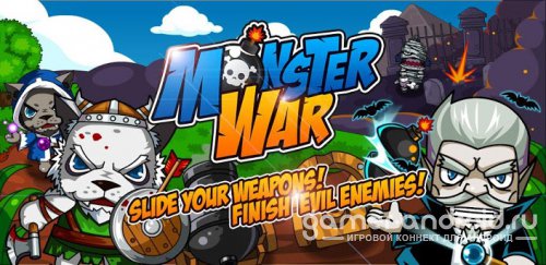 Monster War - Война чудовища является игрой сопротивление, где вам предстоит защищать свой замок от натискав волков, мумий. Легким движением пальца вы сможете стрелять из пушек по врагам, собирать монетки и многое другое. Также в игре реализована понятная простая графика, 5 видов вооружения и т.п.