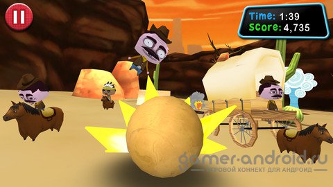 Roll: Boulder Smash! - веселая аркада, где вы сможете попробовать себя в роли разрозненного Бога, который с помощью огромного каменного шара разбивает как кегли непослушных жителей в различных эпохах, вплоть до зомби и йети.