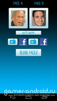 Face Blender - веселое приложение, позволяющие смешать несколько фотографий и получить смешную картинку. Все что вам нужно это добавить несколько фотографий для смешивания, их можно сделать и через камеру, и нажать кнопку бленд, и вы получите смешную фотографию.