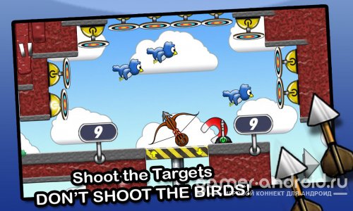 Arrow Mania - увлекательная аркадная игра с участием арбалета. В этой игре вы должны стрелять по самолетам, птицам, мишеням, чтобы перейти на следующий уровень. В тех уровнях где присутствуют птицы и мишени, вам нужно попасть в мишень не задев птицу.