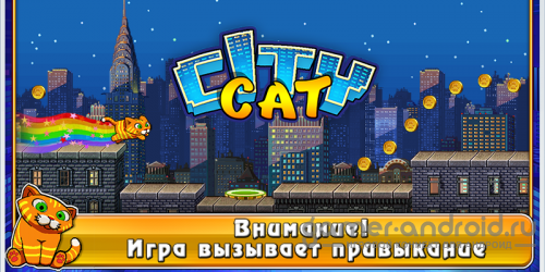 City Cat - Очень забавная аркадная игра. История начинается с того, что инопланетяни украли у кота холодильник, но он не влез в их корабль и они его привязали к нему. По мере их движения из холодильника выпадает еда, кот решил, если не удастся спасти холодильник, то хоть еду верну. В общем кот бегает и ест всю еду, которая падает. Отличный геймплей, смена героя, сбор монеток и бонусов, вертолет и многое другое!