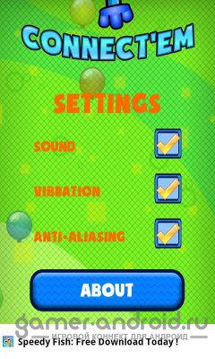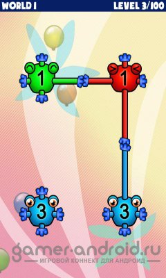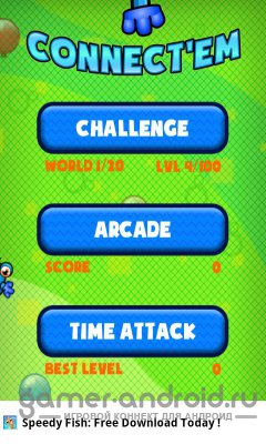 Connect'Em - одна из лучших логических игрушек с мультяшной графикой для Android. Игра очень простая, но захватывающая, ваша задача соединить все капли, но каждая капля имеет ограниченное количество отростков для соединения. Вам нужно соединить их так, чтобы все отростки были задействованы. В игре 3 режима: аркада, приключение и выживание.