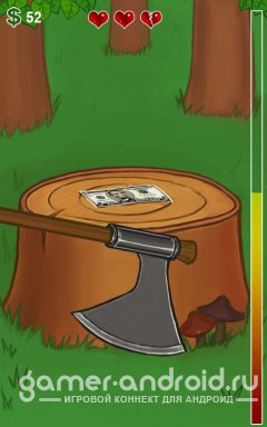 Денежный Палец - забавная аркадная игра. В которой вы должны держать доллор пальцем. В какой-то момент начинает проноситься топор или самурайский меч, вы должны убрать палец на секунду, чтобы не остаться без него. Пока вы держите купюру в правой части экрана растет столбик, когда отпускаете уровень начинает падать. Как только столбик достигнет верха- деньги ваши.