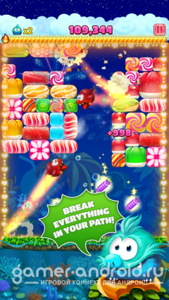 Candy Block Breaker - очень хорошая и красочная головоломка от лучшего разработчика игр - Gameloft. В игре вы будите в роли забавных монстров, которые должны крушить все что видят. На вас будут надвигаться кучи различных блоков и вам нужно будет крушить их.