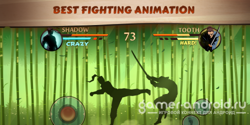 Shadow Fight 2 - интересные драки, с магическими эффектами и комбо. Сражайтесь со своим соперников в рукопашном бою или же возьмите одно из оружий. Используйте комбо приемы, чтобы окончательно добить врага или же различные магические эффекты, например огонь.