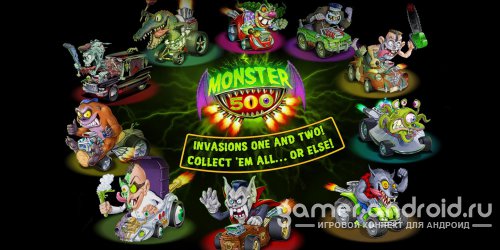 MONSTER 500 - интересные гонки. Много замечательных персонажей и не менее интересных машин. Так кто же все таки придет первым? В MONSTER 500 вы сможете поездить в любом из 6 миров, выбрать машину, которая будет вам по душе и улучшить ее, применяя для этого черепа, кости. Так же можно и перекрасить свой автомобиль в любимый цвет. Своими достижения в соревнованиях вы сможете разблокировать новых персонажей.