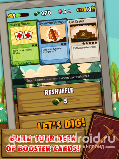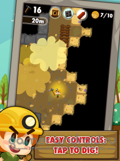 Pocket Mine - отправитесь в подземные поиски золота и драгоценностей в роли трудолюбивого шахтера. которому все по плечу. Много часовая игра, где вы будете нажимать на блоки и опускаться все ниже и ниже в поиске богатств. По мима золота, собирайте потерянные артефакты, превратив их в свою коллекцию, которой можно будет торговать среди игроков. В игре так же есть бонусы, которые помогут вам.