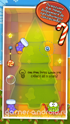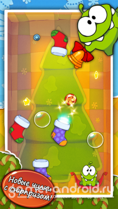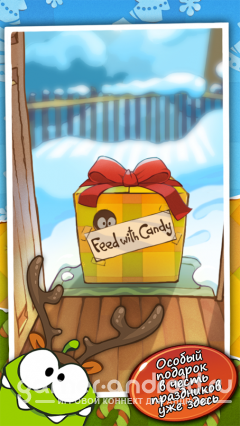 Cut the Rope: Holiday Gift - новая игра Ам Ням на Android специально впредверье праздника Нового Года. Новые приключения и новый смысл. В этот раз в игру включены многочисленные хитрые уровне, отличная физика и красочная графика. Проводите пальцем чтобы обрезать веревку и накормить Ам Ням леденцами. Теперь прямо из игры можно смотреть различные видио-ролики про Ам Ням и посылать открытки друзьям.