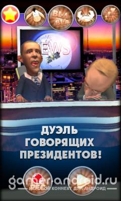 Владимир Путин VS Обама: Сирия - битва двух президентов в самом забавном жанре игры для Android. Говорите им что делать и они будут повторять за вами и выполнять определенные действия. Игра для тех кто любит посмеяться и поднять себе настроение.
