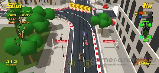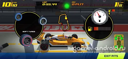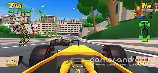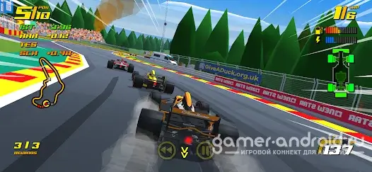 Игра держит темп с первой минуты: скорости огромные, шины тают, как будто сделаны из мела, а повреждения болида заставляют принимать решения на ходу. Улучшения ощущаются моментально — поставил новые детали, и болид буквально оживает. Геймплей прям цепляет, особенно если любишь аркадные гонки из детства.