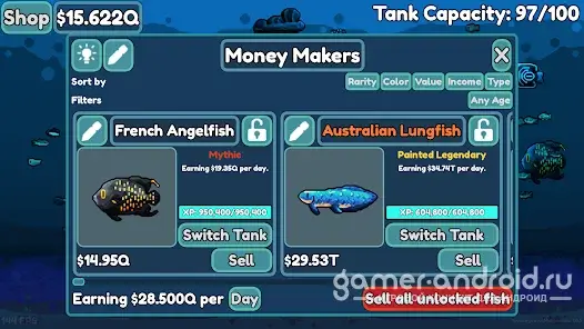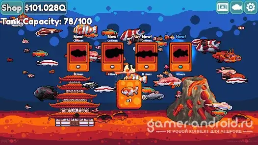 Также можно улучшать аквариум, менять оформление и настраивать атмосферу, включая смену времени суток.