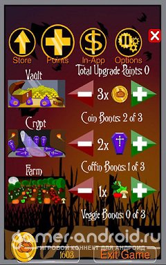 -  Используйте монеты с видом тыквы, чтобы получать очки обновления;