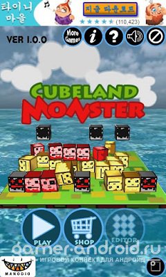 Cubeland Monster - разбивайте трехмерных квадратных монстров в море, чтобы спасти своих друзей кубиков. В далеком прошлом Пинкис из Кубеленд жили мирно и счастливо в течение длительного времени. Однако в связи с вторжением злодеев, их мир изменился. Брайни герой, получает для борьбы прямоугольный кирпич и несколько снарядов. Ему надо спасти своих друзей, скинув в море всех врагов, чтобы мир снова воцарил в Кубеленде.