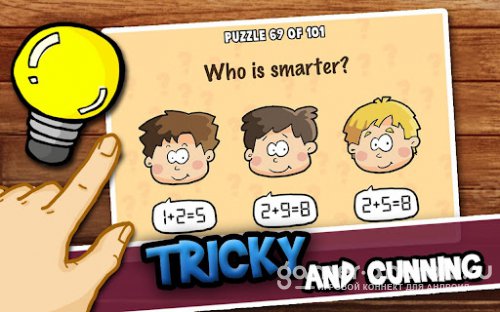 What's My IQ?™ PRO - это очень затягивающая головоломка и в конце дня она предоставляет счет Вашего IQ. А так же, если у Вас есть аккаунт в Facebook, то игра может предоставлять информацию туда и Вы сможете соревноваться с друзьями, кто наберет больше балов. В игре более 50 хитрых загадок и головоломок.