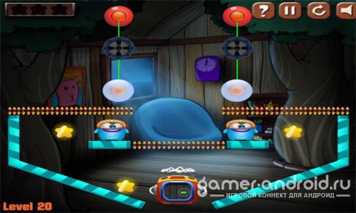 Tiny Buddy - Помогите крошечным друзьям достичь машины времени, собирая по пути так же звезды. Вы будете перебираться при помощи веревок, которые в одном случае нужно направить так чтобы зацепиться, а в другом случае в определенный момент отрезать, чтобы упасть. Изысканный дизайн и сложные уровни, абсолютно захватывающая игра.