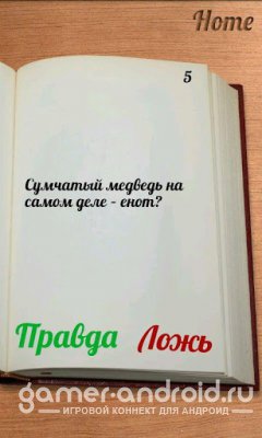 Головоломка 100 Фактов, в которой вам предстоит решить какие из фактов правда а какие нет. Пример фактов: Авторучка была изобретена еще в Древнем Египте? Если камбалу положить на шахматную доску, она тоже станет клетчатой? Радугу можно увидеть и в полночь? и тому подобные. Факты есть как на английском языке так и на русском.
