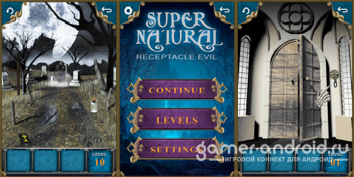 Supernatural: Evil receptacle - начните страшное путешествие в сверхъестественное, решая на своем пути различные загадки и головоломки. Проходите уровни прибегая к масштабированию, тыканию, встряхиванию, наклонам, приводить в действия на экране изображения, чтобы найти способ для решения головоломок.