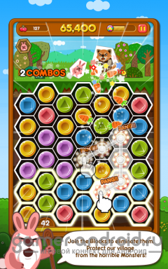 LINE Pokopang - увлекательная и интересная головоломка с хорошей графикой и смыслом на Android. Монстры вторглись в мир животных. Теперь вы в роли кролика Бони должны уничтожить монстров для этого вам нужно решать головоломки и уничтожать одноцветные блоки. Игра довольно простая и захватывающая. Рисуйте линии по блокам из одного цвета, только так вы сможете прогнать монстров.